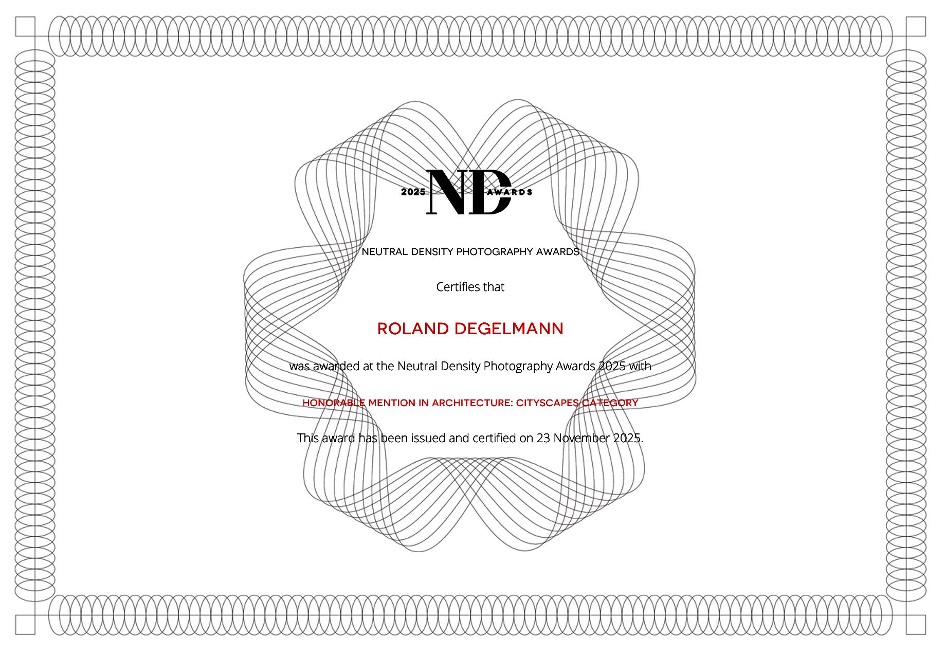 „Die letzten Jahre sind ein deutlicher Beweis für den Erfolg der ND AWARDS auf ihrem Weg zu einem der begehrtesten professionellen Wettbewerbe unter Fotografen. Unser Markenzeichen ist ein moderner Ansatz in der Fotografie, gepaart mit Respekt vor der Tradition. Im Sinne der Gegenseitigkeit stehen bei den ND AWARDS unsere Teilnehmer im Mittelpunkt des Wettbewerbs, da diese Preisverleihung ohne ihre Teilnehmer nicht existieren könnte. Letztere sind für uns genauso wichtig wie wir für sie. In diesem Sinne beleuchten wir den Weg zur Weiterentwicklung, während wir weiterhin die besten Künstler entdecken, inspirieren und fördern.